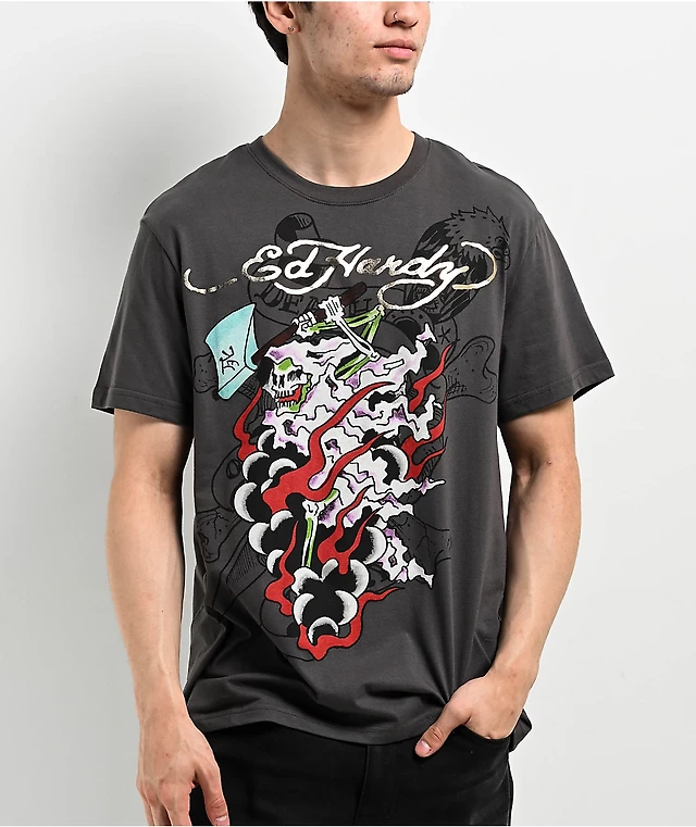 Ed Hardy Ace Skull Charcoal T-Shirt