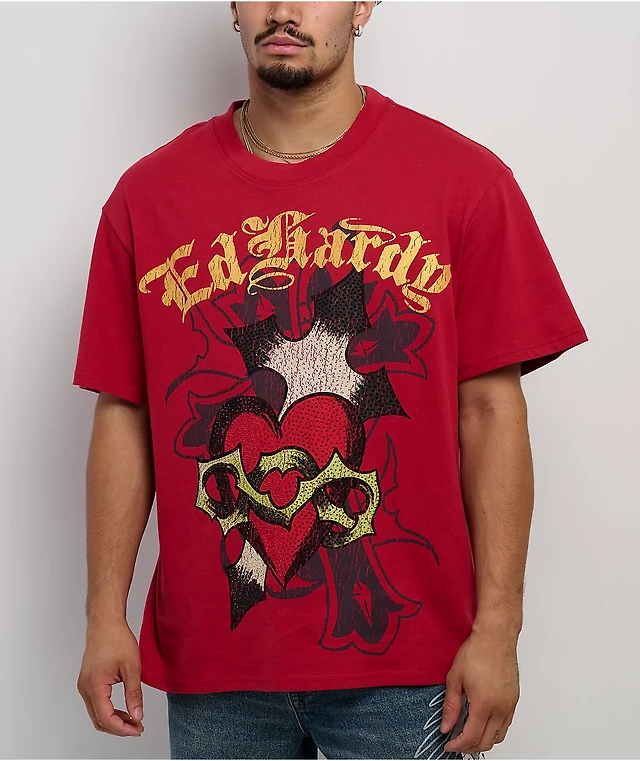 Ed Hardy Cross Heart Charcoal Boxy T-Shirt