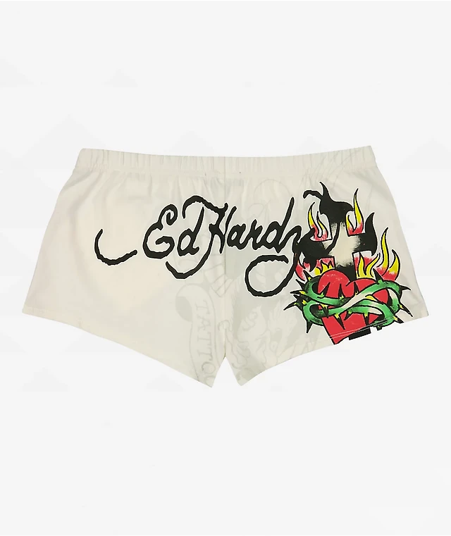 Ed Hardy Cross Heart Ivory Lounge Shorts