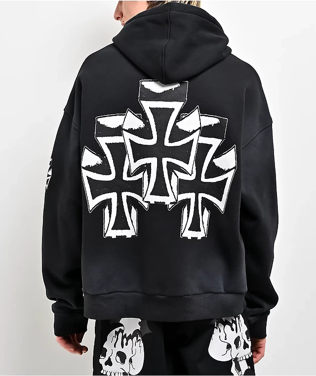 Ed Hardy Bat Skull Faux Fur Black Zip Hoodie