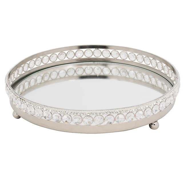 Elegance Sparkle Round Mirror Tray with Beaded Crystals