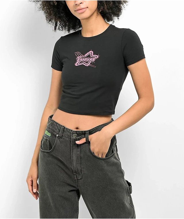 Empyre Amina Rhinestone Black Crop T-Shirt