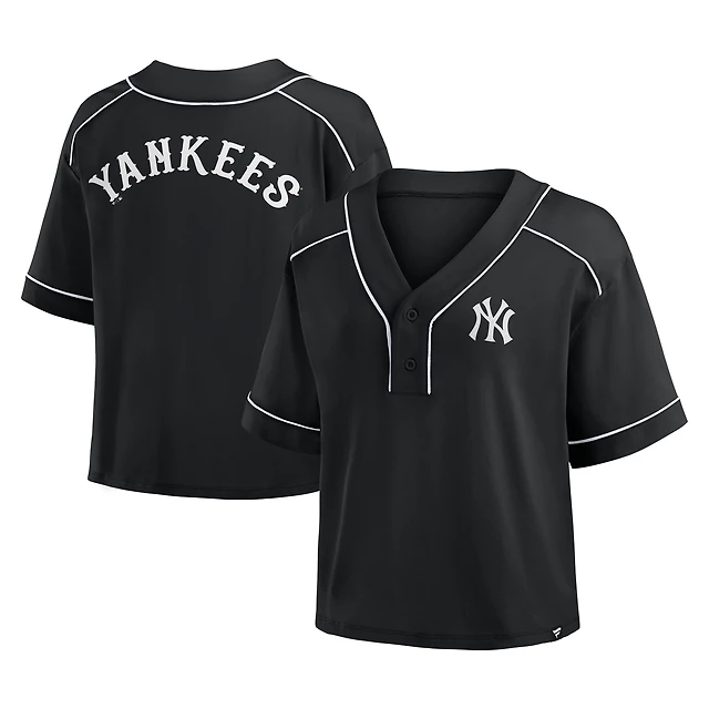 Women's Fanatics Black New York Yankees Oversized Champ Game Cropped V-Neck T-Shirt
