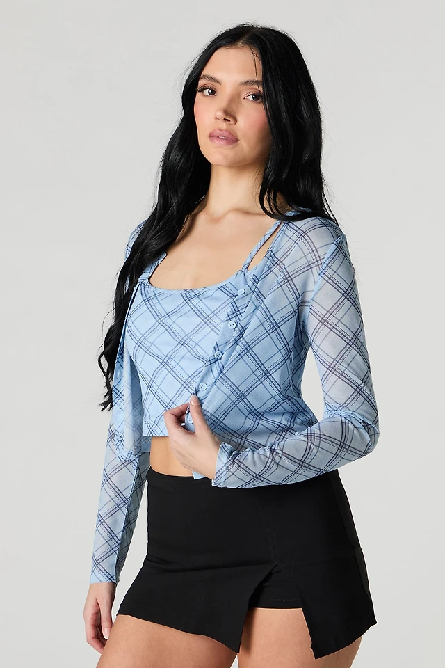 Mesh Ruched Corset Tank