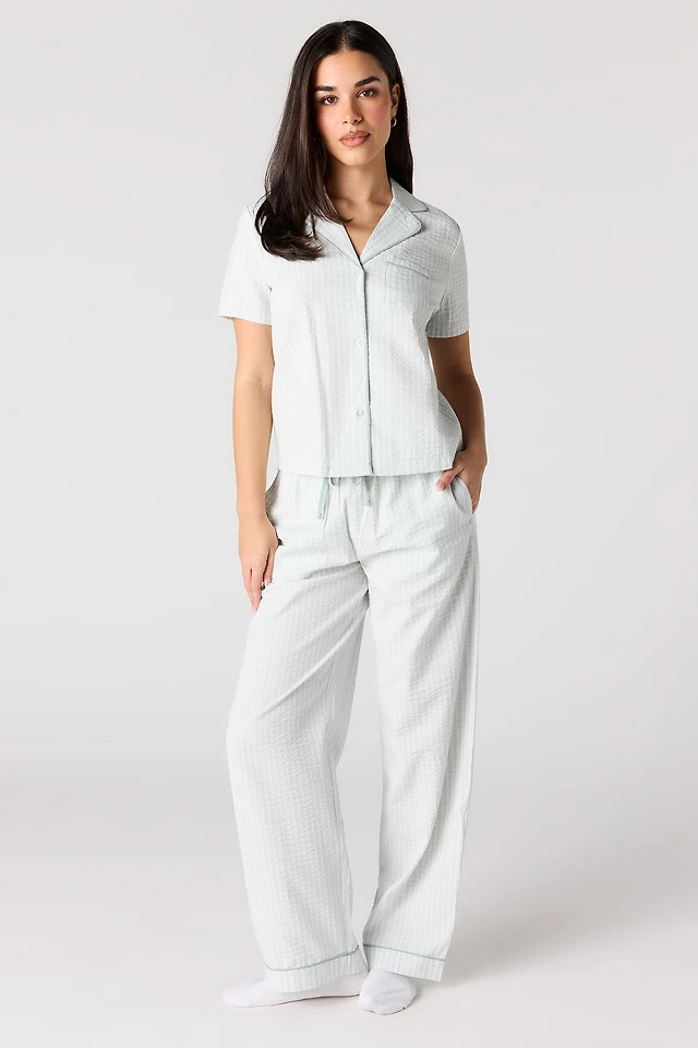 Striped Button-Up Top & Pant Pajama Set