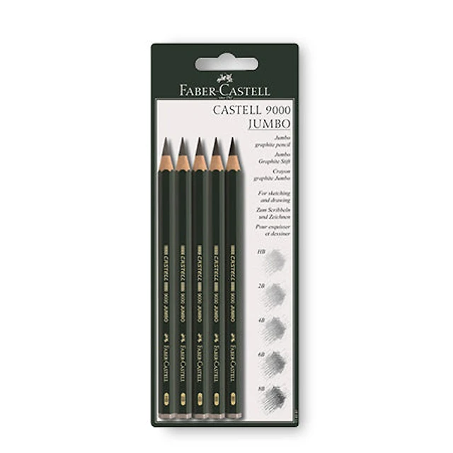 Set of 5 Castell 9000 Jumbo Graphite Pencils