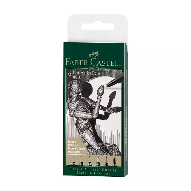6-Pack PITT Artist Pens - 1.5/XXS/XS/S/F/M, Black