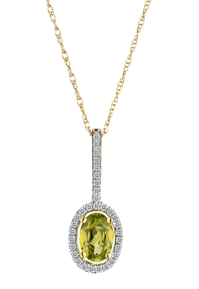 Genuine Peridot & .10 Carat of Diamonds Halo Pendant