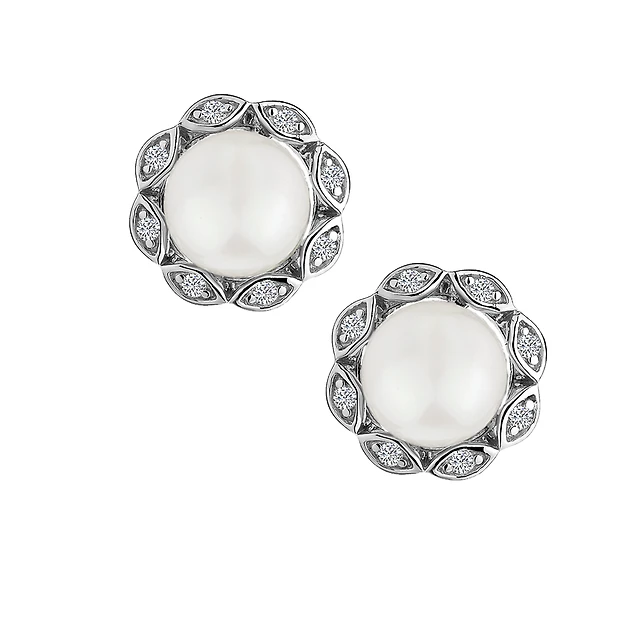 Created White Sapphire & Fresh Water Pearl Stud Earrings, Silver.....................NOW