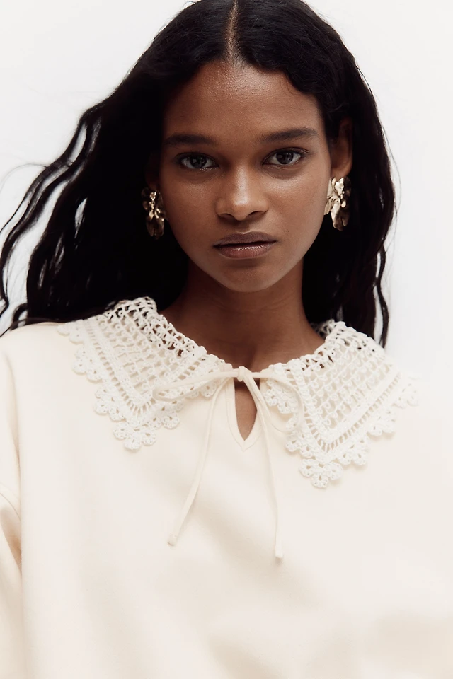 Pointelle-Knit Peplum Top