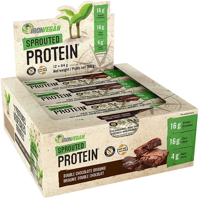 IRON VEGAN Sprouted Protein Bar Double Chocolate Brownie (12 x 64 gr Bars)