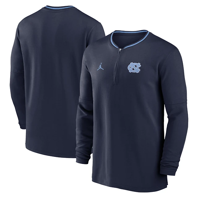 Men's Jordan Brand Navy North Carolina Tar Heels 2024 Sideline Coach Performance Half-Zip Long Sleeve Top