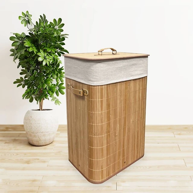 Collapsible Bamboo Cane Laundry Basket with Lid