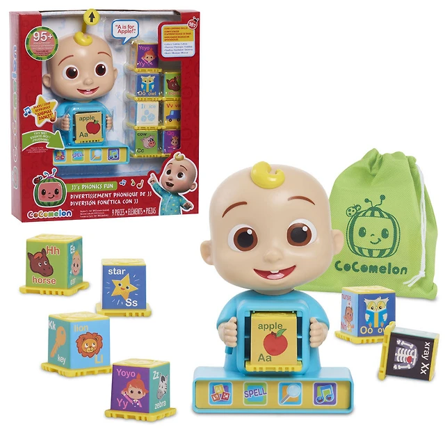 CoComelon JJ Phonics Fun Interactive Learning and Education Toy, 4 Modes of Play, Animal Dance Song, Spelling, 9-pieces - English Edition
