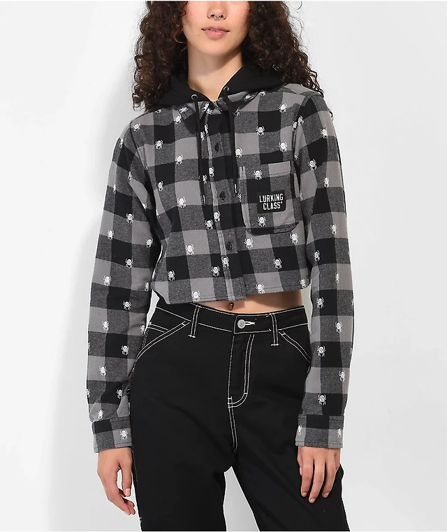 Lurking Class by Sketchy Tank Daggers Red & Black Crop Hooded Flannel Shirt