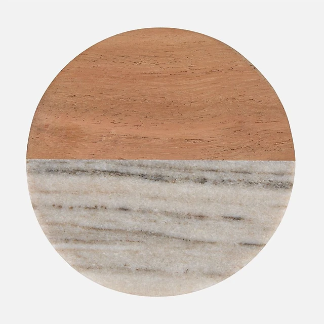 Maxwell & Williams Round Marble & Acacia Coaster - White & Wood