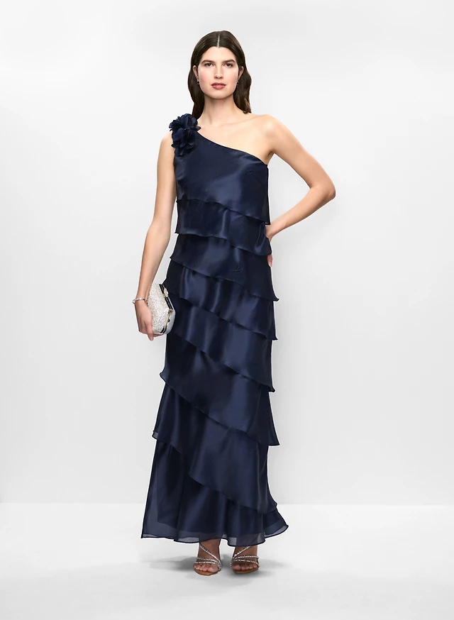 Betsy & Adam - Mesh Insert Off-the-Shoulder Dress