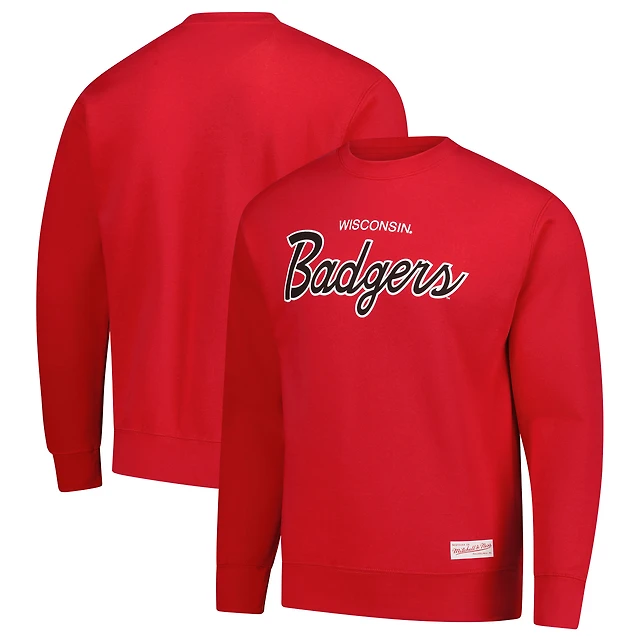 Men's Mitchell & Ness Red Wisconsin Badgers Elite Script Pullover Sweatshirt