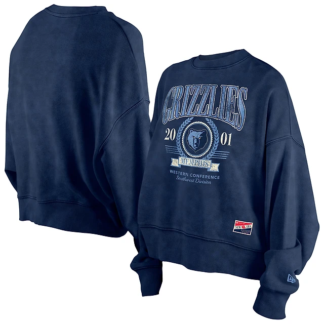 Women's New Era Navy Memphis Grizzlies Throwback Vintage Enzyme Wash Oversized Boxy Pullover Sweatshirt
