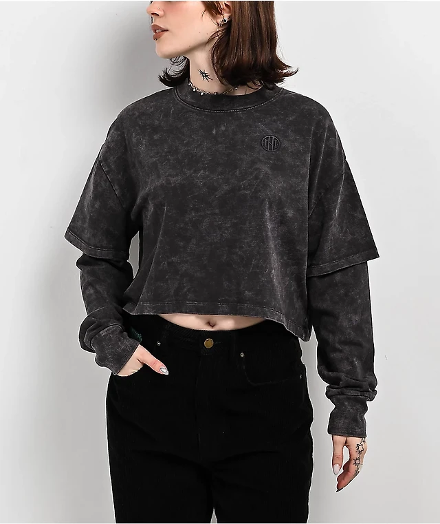Ninth Hall Fundamentals Sylvie Black Wash Fitted Crop Long Sleeve T-Shirt