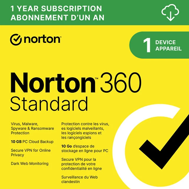 Norton 360 Standard (PC/Mac) - 1 Device - 10GB Cloud Backip - 1-Year Subscription - Digital Download