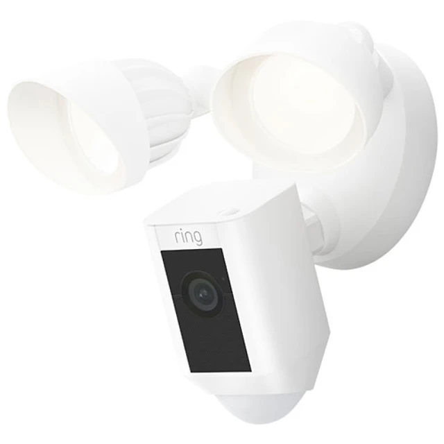 Ring Floodlight Cam Pro Wired Wi-Fi 2K Camera with Ring Vision, 2 LED Lights & 3D Motion Detection - White