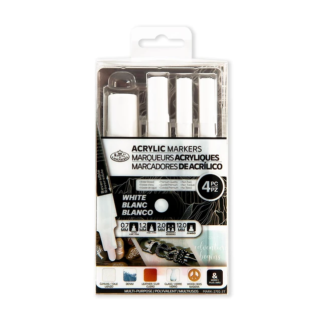 Acrylic Marker Kit - Assorted Tips, White, 4 Pieces