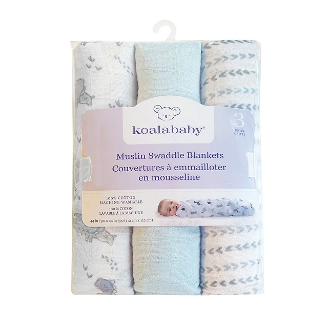 Koala Baby - 3 Pk Muslin Swaddle - Grey Safari