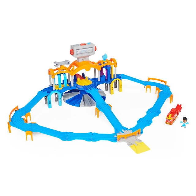 Mighty Express, Farm Station Adventure Bucket and 11-Piece Train Track Set with Exclusive Farmer Faye Toy Train