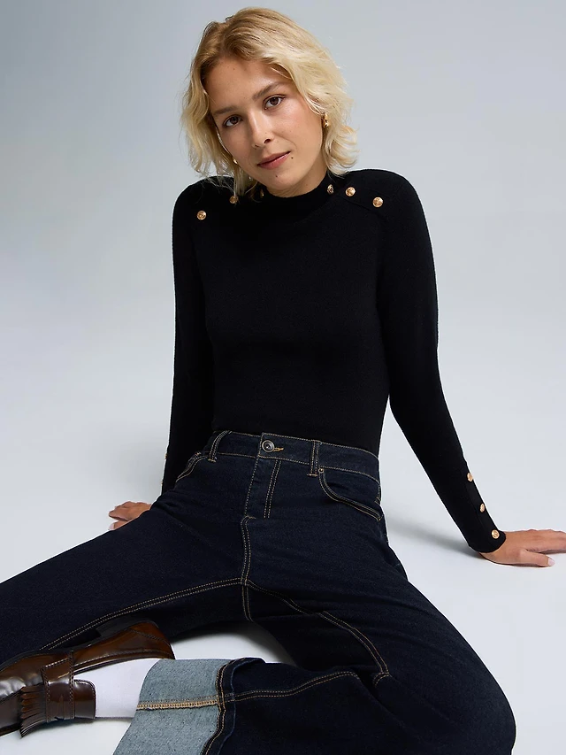 Button Detail Off-The-Shoulder Sweater