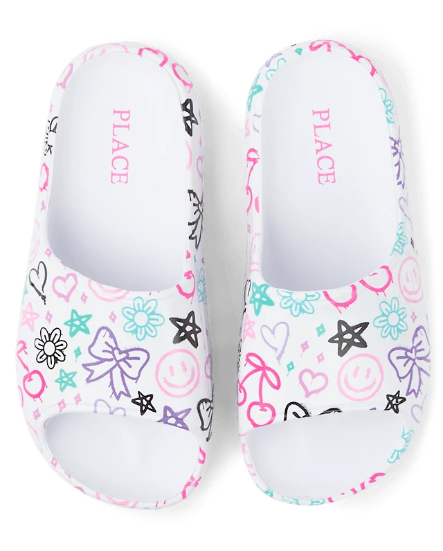 Girls Floral Buckle Slides