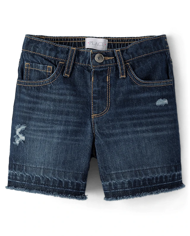 Girls Patch Pocket Relaxed Denim Shortie Shorts