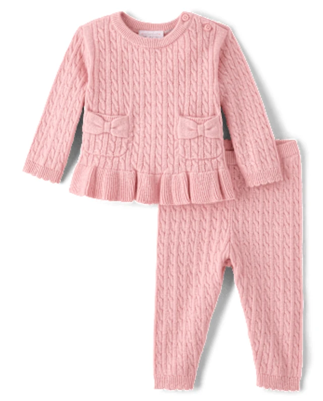 Toddler Girls Cable Knit Floral 2-Piece Cold Weather Set
