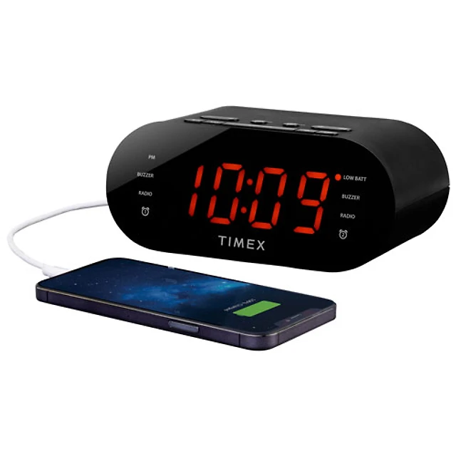 Timex T232B Dual Alarm Clock Radio With USB Charging