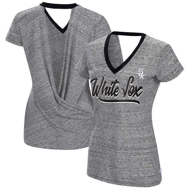 Women's Touch Black Chicago White Sox Halftime Back Wrap Top V-Neck T-Shirt