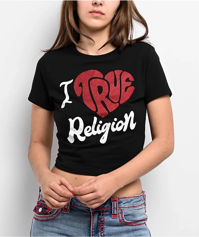 True Religion Anniversary Crystal Spicy Red Crop T-Shirt