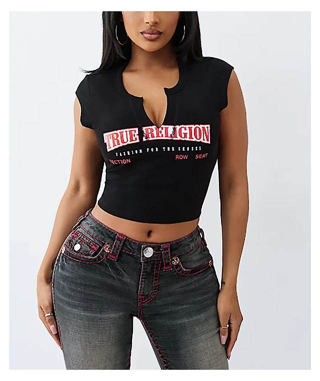 True Religion Leopard Crystal Logo Crop T-Shirt