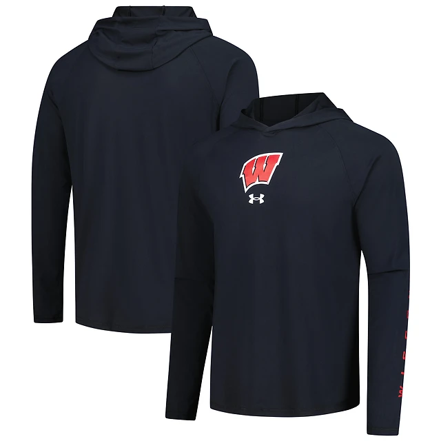 Men's Under Armour Black Wisconsin Badgers Tech Stretch Long-Sleeve Hooded T-Shirt