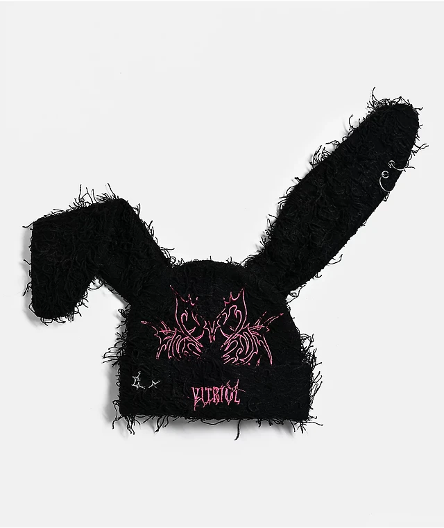 Vitriol Embroidered Black Faux Fur Ear Muffs