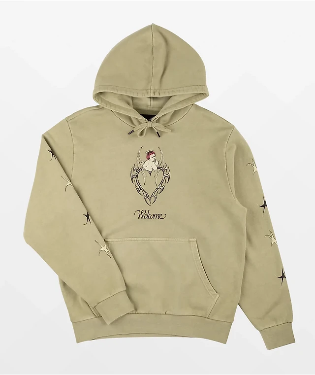 Welcome Barb Sleeve Embroidered Bone Pigment Dye Hoodie