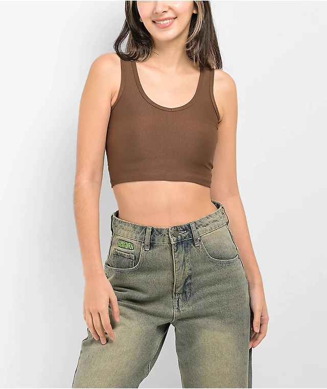 Zine Brianna Khaki Buckle Crop T-Shirt