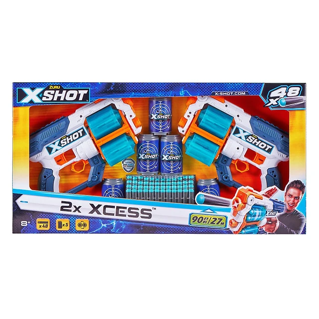 X-Shot Excel Double Xcess Foam Dart Blaster Combo Pack (48 Darts 5 Cans )