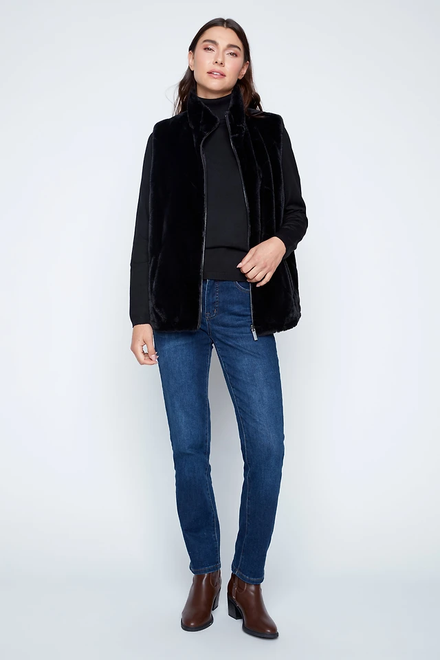 Cable front faux fur jacket