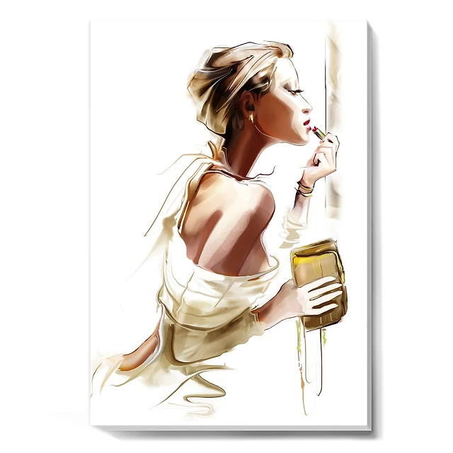 Female Face one Line Drawing with Minimal Shapes Canvas Wall Art Print