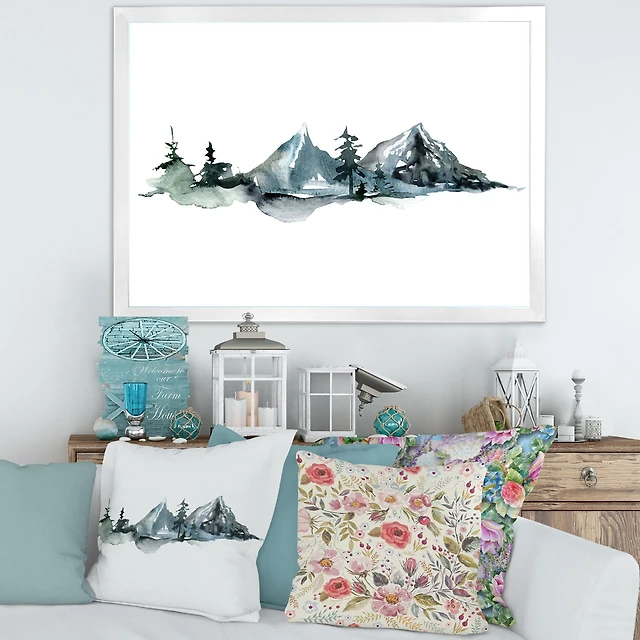 Minimalistic Winter Mountains and Fir Forest III Canvas Wall Art Print