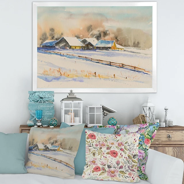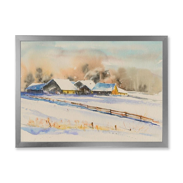Small VIllage At Sunset Covered with Snow Canvas Wall Art Print