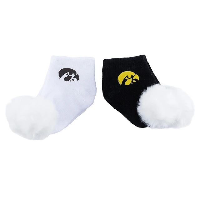 Infant ZooZatz Iowa Hawkeyes Two-Pack Pom Socks