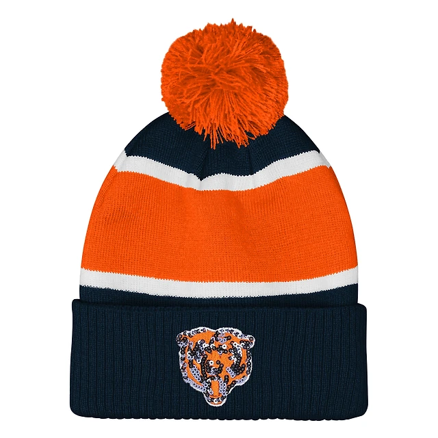 Girls Outerstuff Navy Chicago Bears Let's Play Cuffed Knit Hat with Pom