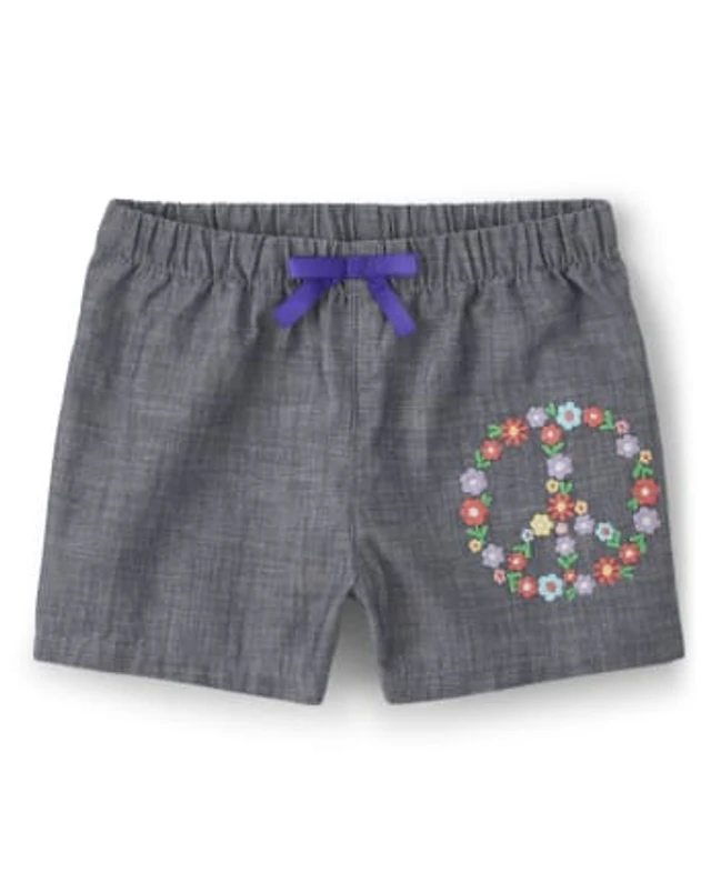 Girls Embroidered Peace Shorts - Music Festival