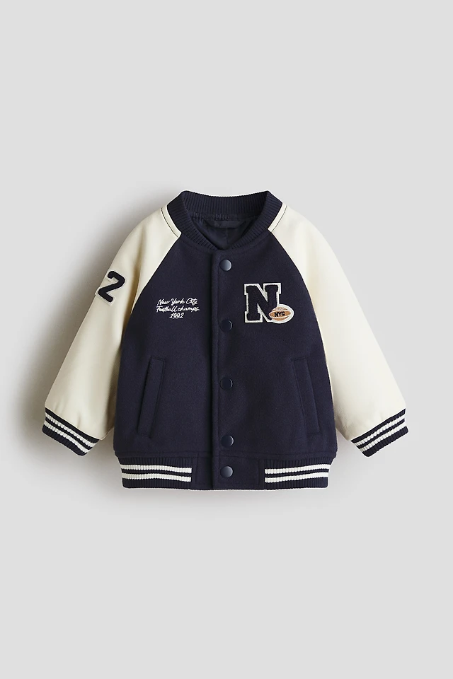 Appliquéd Teddy Fleece Bomber Jacket